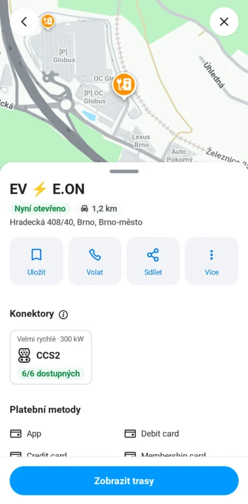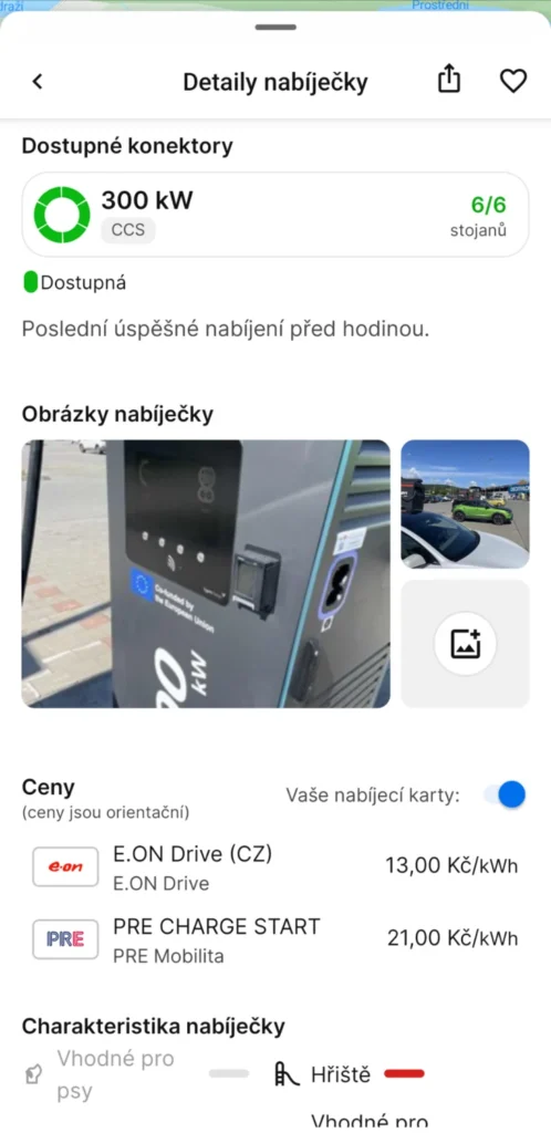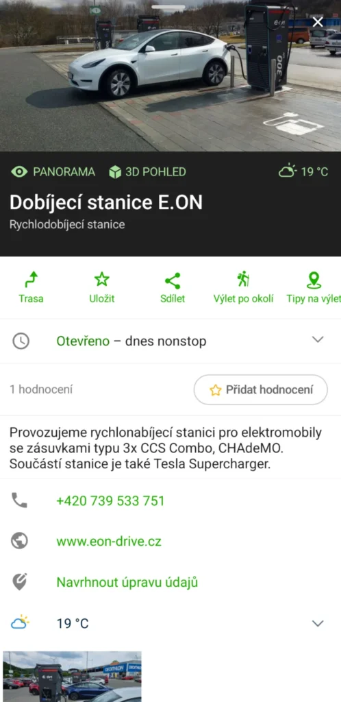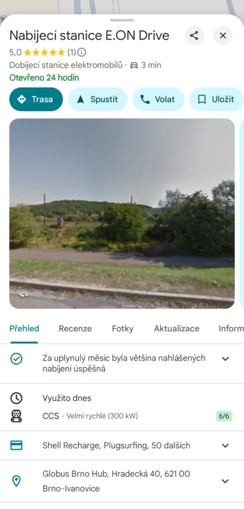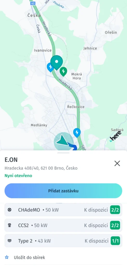 Samotná databáze nabíjecích stanic se zdá celkem obsáhlá, nenalezl jsem v ní nějaké mezery. Je tam i zmiňovaná rychlonabíječka E.ONu u Globusu. Nicméně informace o nabíjecích stanicích jsou slabé. V popisku je zpravidla uveden typ konektoru, ale už tam většinou nenajdete, v jakém je počtu, a už vůbec ne aktuální obsazenost.