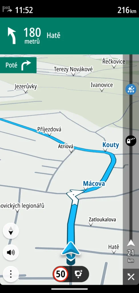 Jinak jde na TomTom GO vidět, že vychází z tradiční navigace. Rozhraní není typické pro mobilní aplikaci. Na druhou stranu to není nutně negativní věc, je rychlé a přehledné.